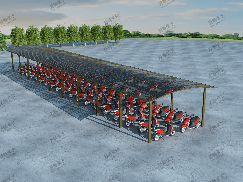 至尊卡爾的自行車車棚采用高強(qiáng)度的6063-T5鋁合金,鋁合金材質(zhì)不生銹,堅(jiān)固安全,使用壽命長。頂棚采用全新料的耐力板,抗沖擊性能強(qiáng)、強(qiáng)度是鋼化玻璃和亞克力板數(shù)倍,如下自行車車棚效果圖。